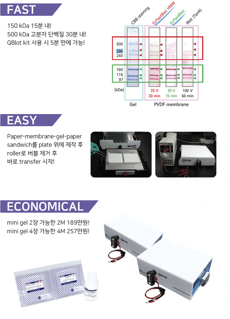 더욱 편리하게 transfer를 하기 위해서 Qblot이라는 pack이 있어서 gel과 membrane만 준비하고 transfer할 수 있습니다.