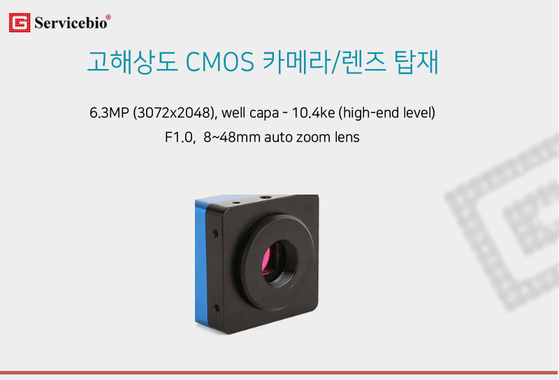 6.3MP의 고해상도 카메라에 well capacity는 카메라의 각각의 웰이 빛을 답을수 있는 능력을 나타내는데, 10.4ke는 일반카메라로는 매우 고사양, 전문가급 카메라의 수준의 능력이라고 볼 수 있습니다. F1.0도 chemidoc이 아닌 가운데 매우 밝은 렌즈로 노이즈 없이 이미지 획득하는데 매우 중요한 수치입니다.