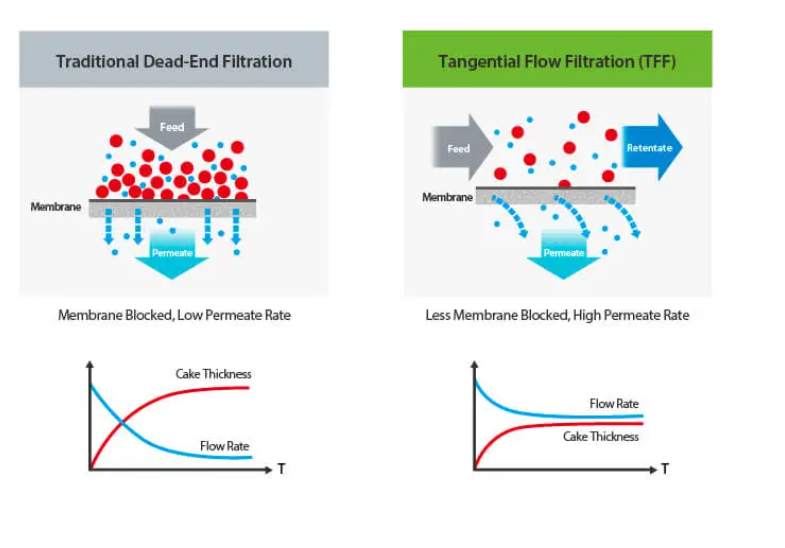 TFF는 여과 방식중 ultrafiltration 방식에 속하고, 그 중에서 가장 좋은 효율을 내는 방법으로 알려져 있습니다.